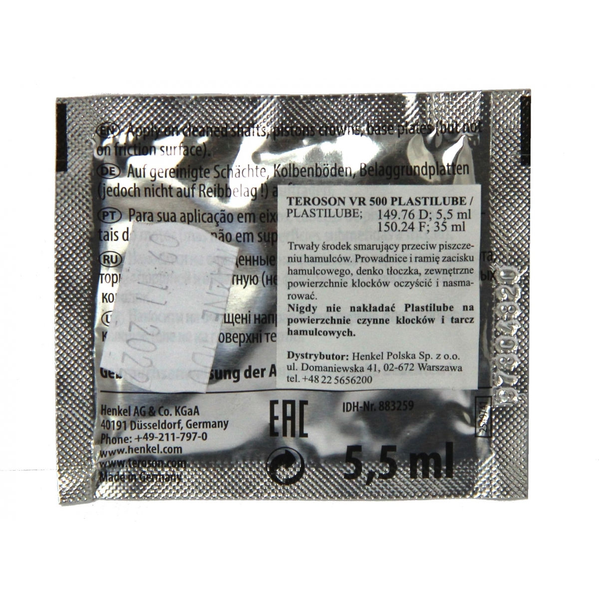Trwały środek smarujący przeciw piszczeniu hamulców. Prowadnice i ramę zacisku hamulcowego, denko tłoczka, zewnętrzne powierzchnie klocków oczyścić i nasmarować.